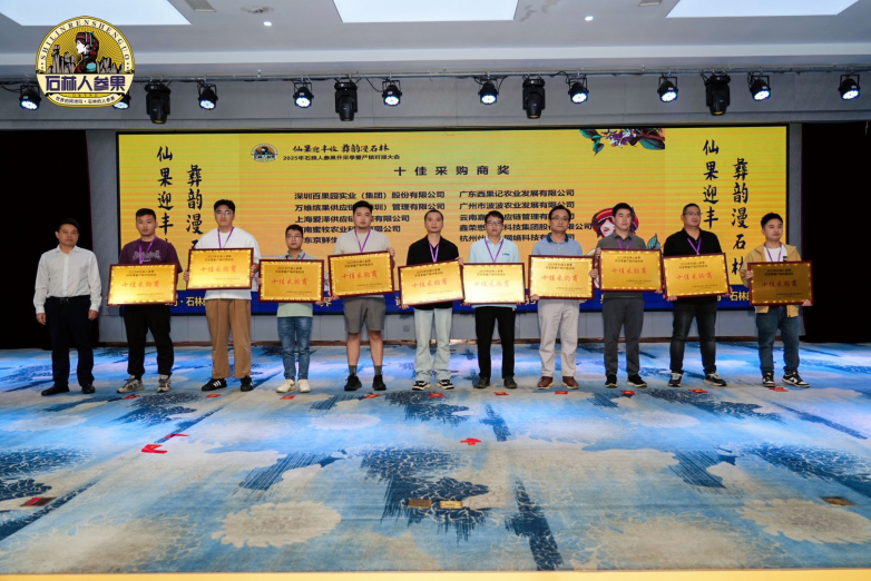 为了激励行业优质企业、优秀从业者,活动现场隆重举行了“十佳供货商”“十佳采购商”授牌仪式。深圳百果园实业(集团)股份有限公司、万维缤果供应链(深圳)管理有限公司、上海爱泽供应链管理有限公司、等20家企业荣获殊荣,成为推动石林人参果产业发展的中坚力量。通过表彰先进典型,活动不仅树立了行业标杆,更激励更多企业积极参与到石林人参果产业链的建设与协同中来,为产业升级注入新动力。