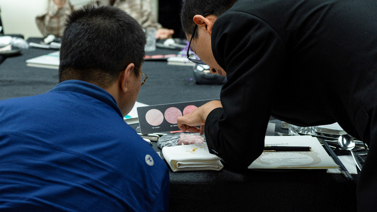 (图)嘉宾在研讨会上进行猪肉感官测评