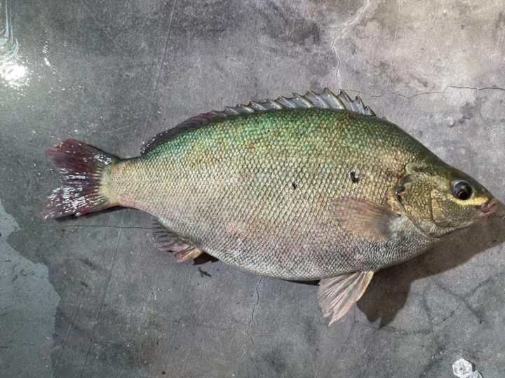 陈哲龙介绍,澳洲翡翠斑(Scortum bidyanus)学名绿锯眶鯻,又名澳洲银鲈、翡翠斑、绿珍珠斑、翡翠鱼。原产于澳大利亚本凯那-布罗托水系、爱尔湖的本土鱼类,对环境的适应能力较强,是一种广温、广盐性的鱼类,喜欢在盐度12-20‰左右的入海口区域生长,喜欢在水体的中下层区域活动。澳大利亚鯻科鱼类有23种,翡翠斑是其中极具推广前途的一种。
