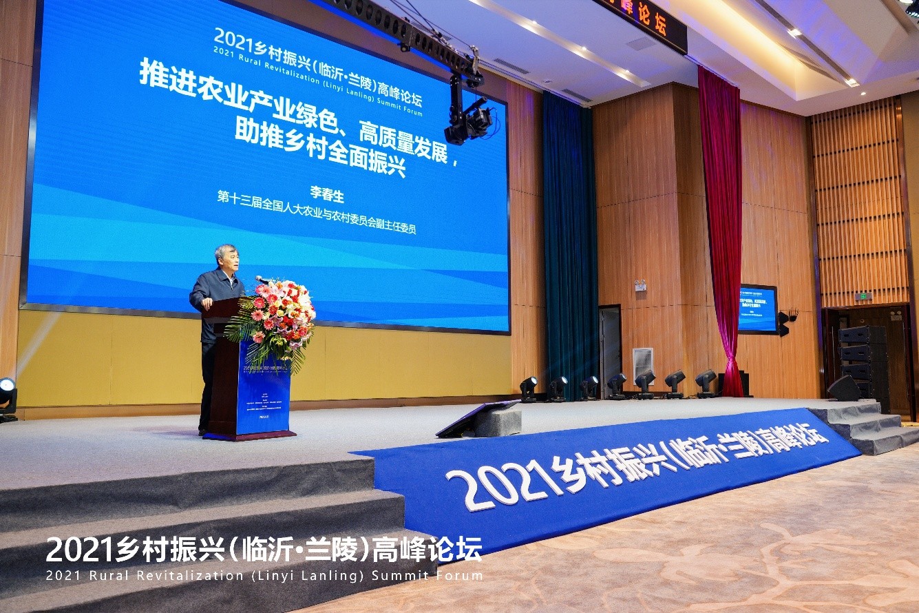 4月11日,由临沂市人民政府主办,中共临沂市委农办、临沂市农业农村局、临沂市财政局、兰陵县人民政府、临沂城投集团承办,临沂农业发展集团、深圳市丰农控股有限公司、万泉丰怡(深圳)农业发展有限责任公司协办的2021乡村振兴(临沂·兰陵)高峰论坛举行。第十三届全国人大农业与农村委员会副主任委员李春生,中国农业大学原校长柯炳生,中国普惠金融促进会筹备组组长、国家开发银行原副行长刘克崮,中国工程院院士、国家农业信息化工程技术研究中心主任赵春江;临沂市委副书记、兰陵县委书记任刚,临沂市政府副市长郑连胜等出席。