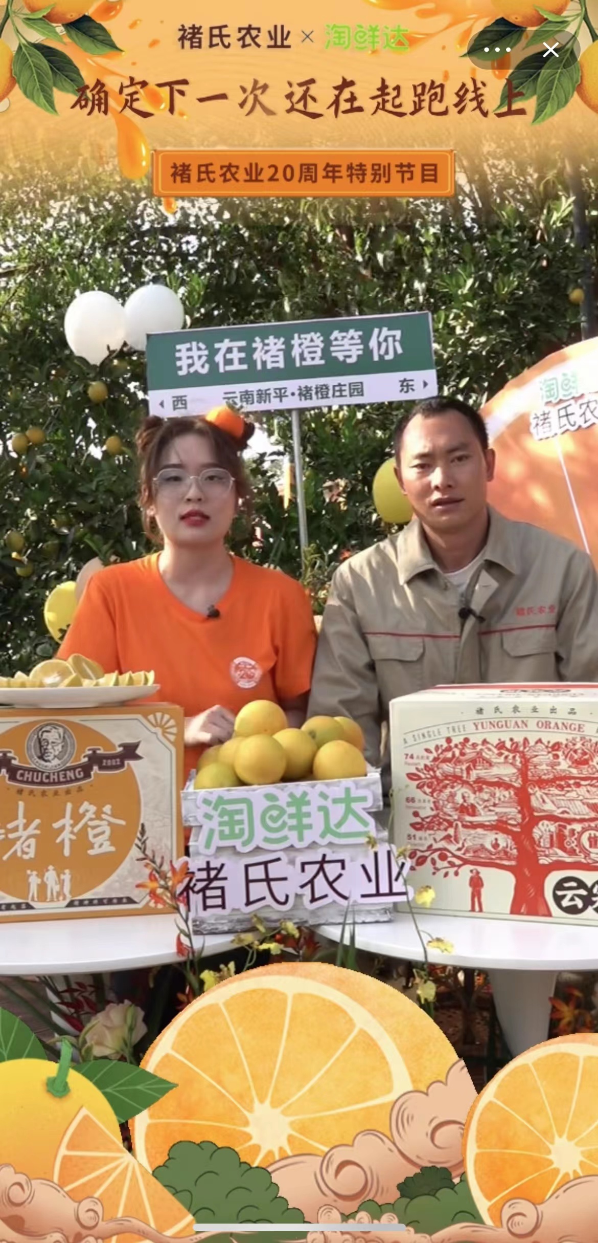 2022年褚橙官方旗舰店直播间打造褚氏农业20周年首场直播访谈节目“褚橙会客厅”,褚氏农业总经理褚一斌、海南甘霖农业科技董事长温正堂、淘鲜达业务总监鹏越坐客直播间,以褚氏农业的过去、现在、未来为时间线索,从“破局20年 没有撤退可言”、“初心20年 重回起跑线”到“新兴20年 新世代橙意青年“三部分,回顾褚氏农业20年探索之路,共同探讨从农业种植、采后技术到生鲜运输等方面的更多可能。