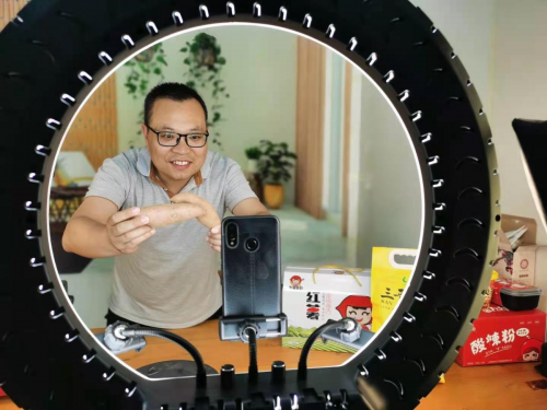 崔新峰正在直播间里带货