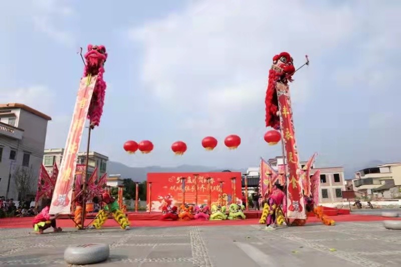 (图说)本次舞狮直播活动在当地村民文化广场举行