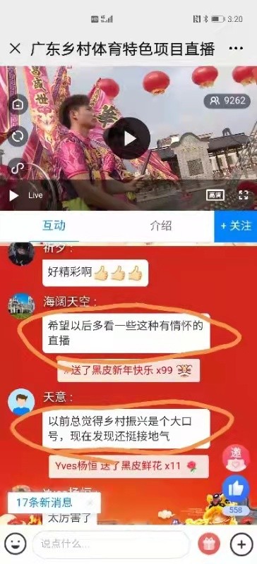 当前正是全国紧急动员应对疫情的关键时刻,今年的春节,可能很多在外工作的乡亲因为防控要求,不能回家过年,因此,通过直播把家乡的建设、乡村的振兴成果转递出来,正是互联网助力乡村建设的重要手段。正如网友所说,通过观看乡村体育的直播,感觉乡村振兴不仅仅是口号,而是接地气惠民生的进行时。