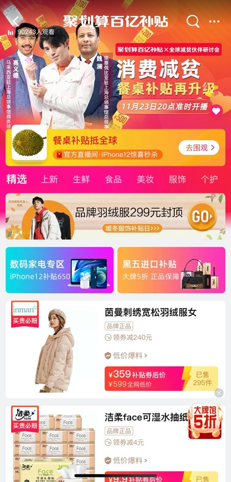 如今,我们已经站在小康社会的门前,中国脱贫攻坚的事业已然胜利在望,而“聚划算百亿补贴”扶贫的步子还没停歇,不仅为中国脱贫事业继续贡献力量,还在为全球减贫事业做出努力。就在11月23日晚的带货活动中,来自马来西亚、埃塞尔比亚等国家和地区的产品也走进直播间,“聚划算百亿补贴“为全球扶贫牵上了一根线。