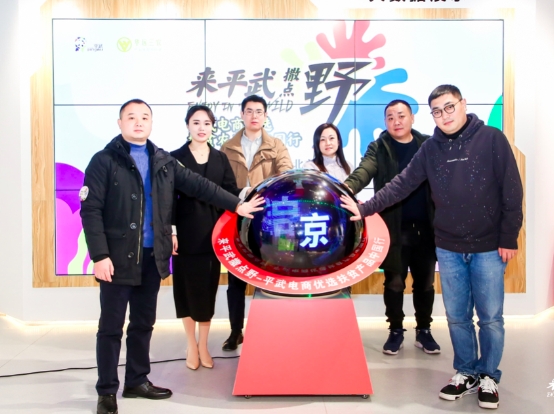 在活动的最后,中国社区扶贫联盟副秘书长许妍,平武县商务和经济合作局副局长何洋,北京华远三农科技产业有限公司副总经理安子鑫,平武太德励拓互联网络科技有限公司总经理李岁岁、平武县电商公共服务中心主任曾思琪共同开启了平武电商优选扶贫农产品中国行。